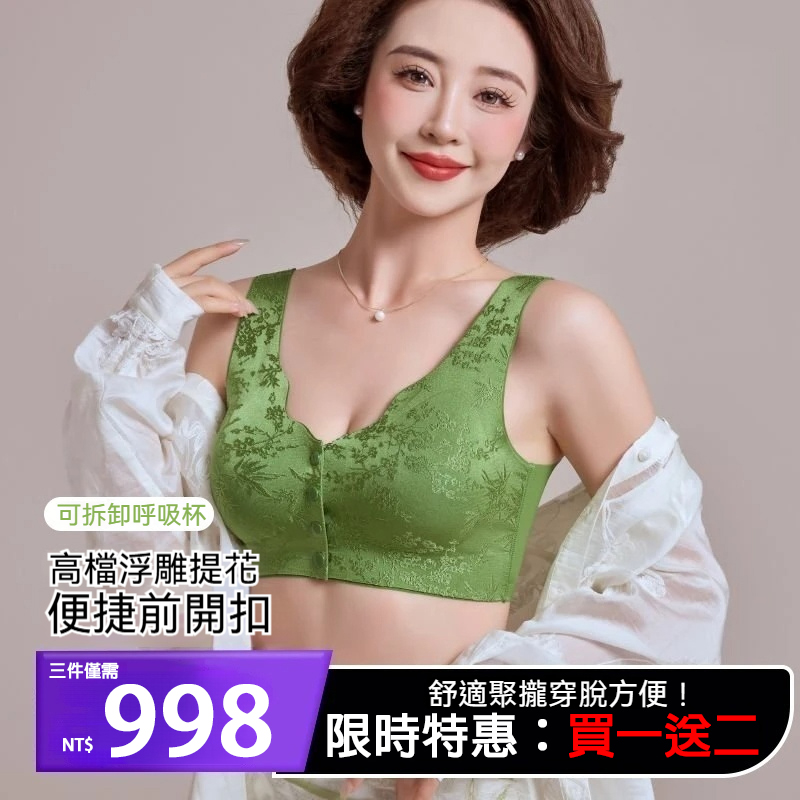 11分鐘前浮雕前扣內衣,買一送二。浮雕蕾絲設計,古典經典美,前扣設計,舒適一秒穿脫! - 買一送二 NT$998 均價低至332/1件